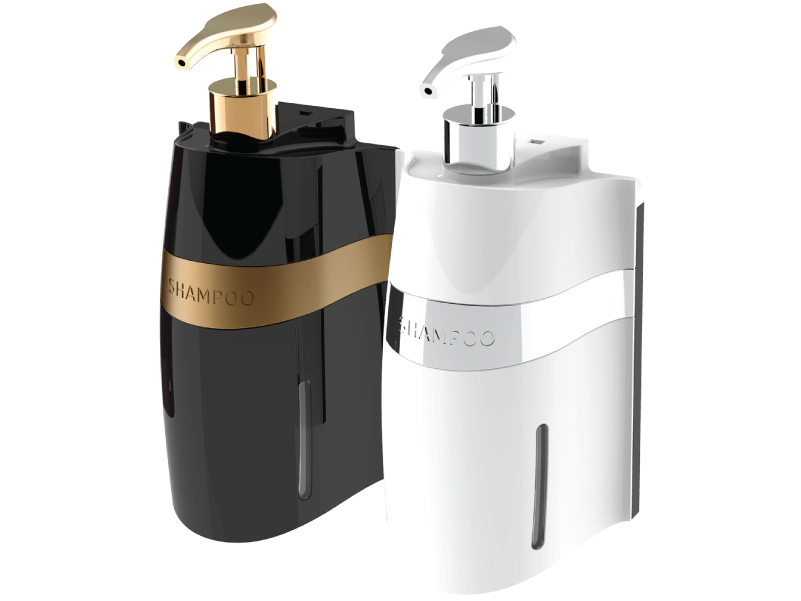 Mounted dispensers provide convenient in-shower delivery of shampoo, conditioner, body wash, and hand wash. The Amara dispenser is fully customizable, easily mountable and tamper proof.